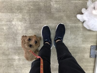 反応が悪かった時は首輪を引いて促して、成功するまで練習していきました!