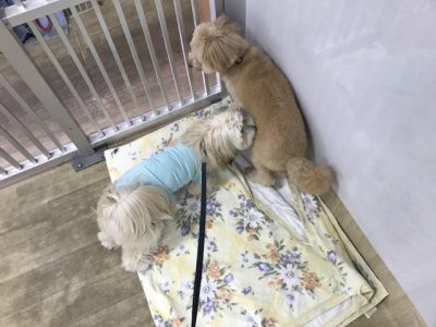 内弁慶でお母さんの側にいる時は壁越しに吠える事があるものの、過去2回のお預かりで環境に慣れてくれた事もあり、お預かりした後は吠える事なくお友達に上手にご挨拶♪