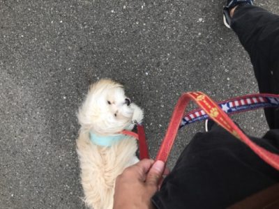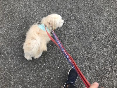 お散歩は出だしから前に出たので、リードを引いたりUターンして意識をこちらに向けるようにしながら練習♪