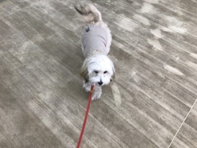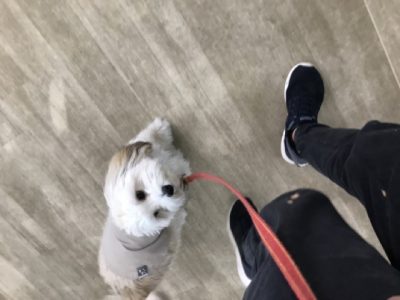お散歩も室内同様に合わせて歩く練習を行っていきました♪
