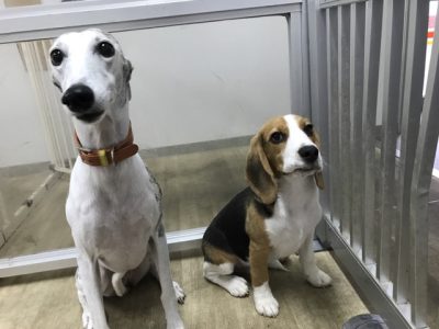 2人とも人が大好きな甘えん坊!スタッフがサークルに入るとすぐに側に来ておねだりしながら甘えてくれました!