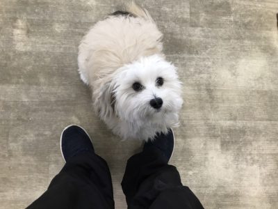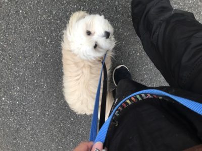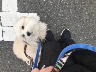 反応が悪かったり途中で止まった時は首輪を引いて促して、成功するまで練習していきました!