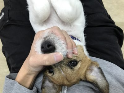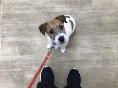 今日からデイトレーニングがスタートしたジャックラッセルテリアのライト君!