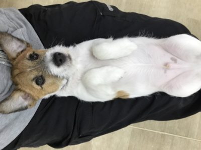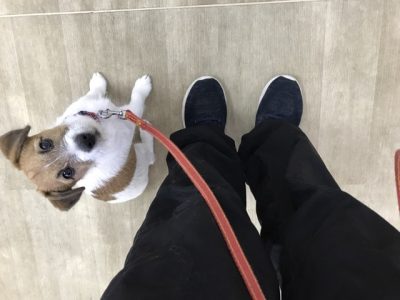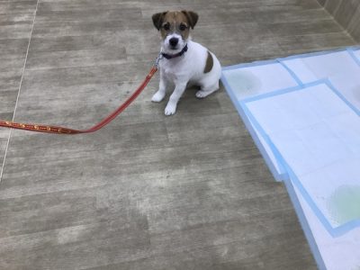 今日からデイトレーニングがスタートしたジャックラッセルテリアのライト君!