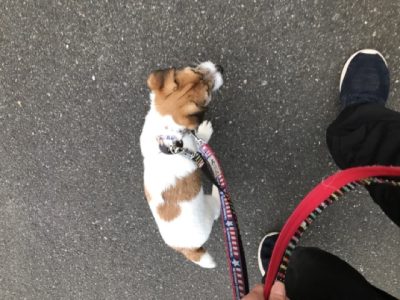 お散歩は、室内と同様に練習!診断の時よりも一緒に歩く時間が増えてきました♪
