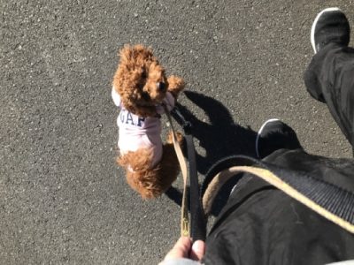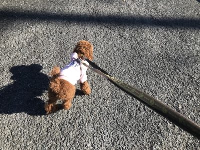 お散歩は、出だしからグイグイ前に出たので、リードを引いたりUターンして意識をこちらに向けるようにしていきます!