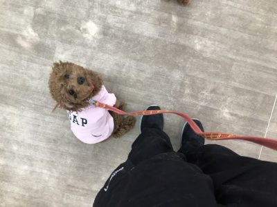 お散歩は、出だしからグイグイ前に出たので、リードを引いたりUターンして意識をこちらに向けるようにしていきます!