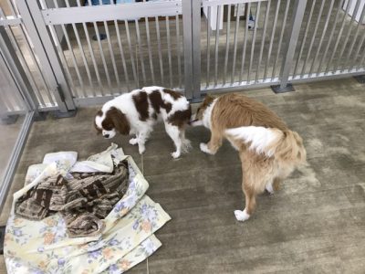最初は上手に接していましたが、だんだんテンションが上がってグイグイ行く事があったり、相手のワンちゃんに相手をしてもらえないと要求吠えし始める場面も見られました(^_^;)