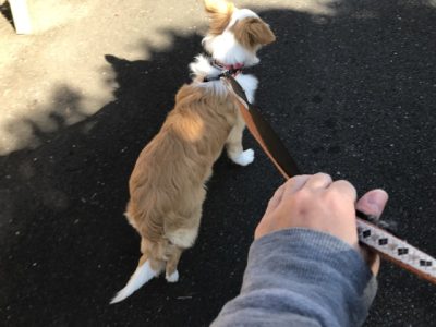 お散歩は、周りを気にしやすく、キョロキョロしたり前に出る事、横にずれる事も多かったので、リードを引いたりUターンして意識をこちらに向けるようにしながら、合わせて歩くように練習していきました!