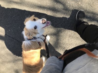 合わせて歩いている時に声をかけて褒め、良くなってくるまで練習していきました♪