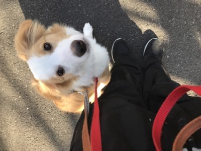 お散歩は、室内と同様に合わせて歩くように繰り返し練習していきました!
