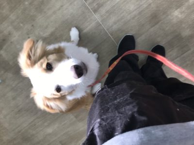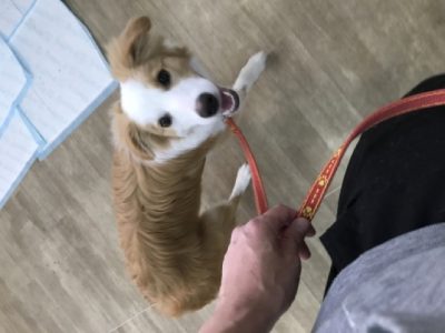 物音、人、地面を気にしやすかったので、リードを引いて意識をこちらに向けていきます。