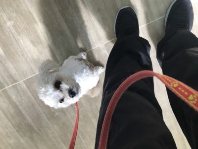 今日からデイトレーニングがスタートした、マルプーのまろん君!