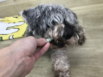 オヤツのガムを持っていくと、夢中で食べていました(*^^*)
